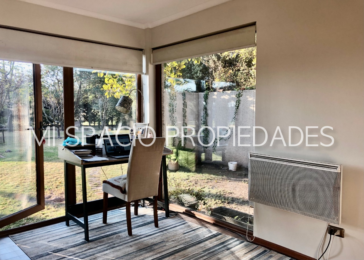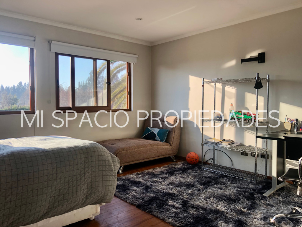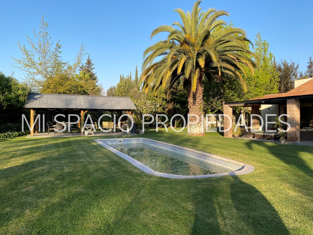 Excelentes terminaciones, dormitorios en piso flotante, zonas húmedas en porcelanatos, ventanas termopanel en PVC folio madera. Quincho techado con parrilla en obra y lavacopas, taller de 28 m2 con ½ baño, precioso jardín con riego automático y derechos de aguas por escritura pública, con más de 40 árboles frutales en producción y árboles ornamentales grandes, piscina de 3 x 10 m, portón automático, cerco eléctrico, y cámaras de vigilancia. Ubicada en condominio consolidado, caminos interiores asfaltados, acceso controlado, con espacios comunes compuesto por piscina, salón de eventos, cocina y camarines, multicanchas: tenis, vóley y fútbol, a pocos metros de colegios, gimnasio, bomba de bencina, supermercados, cercano mall y acceso a Autopista del Sol, Peaje Padre Hurtado, acceso controlado, agua potable de pozo profundo del condominio. A valor de arriendo se suman GGCC de 5 uf aproximadamente.