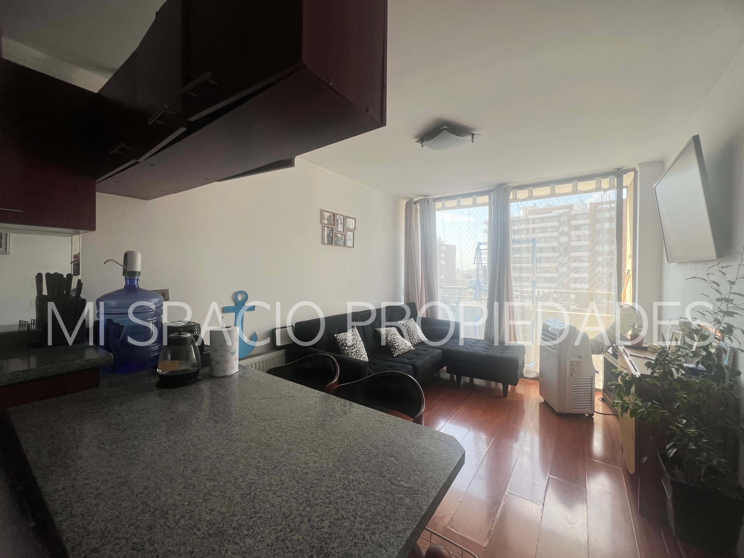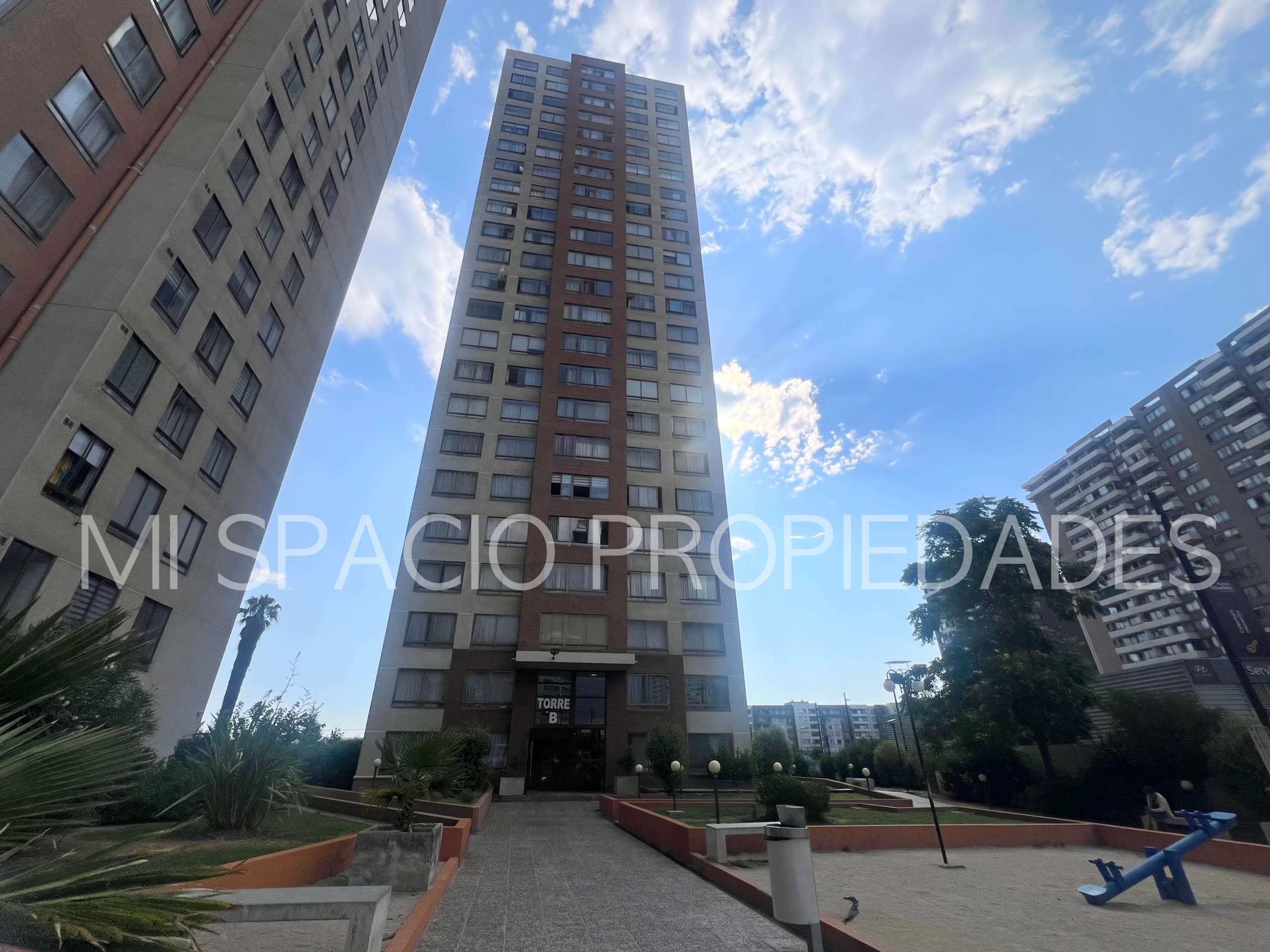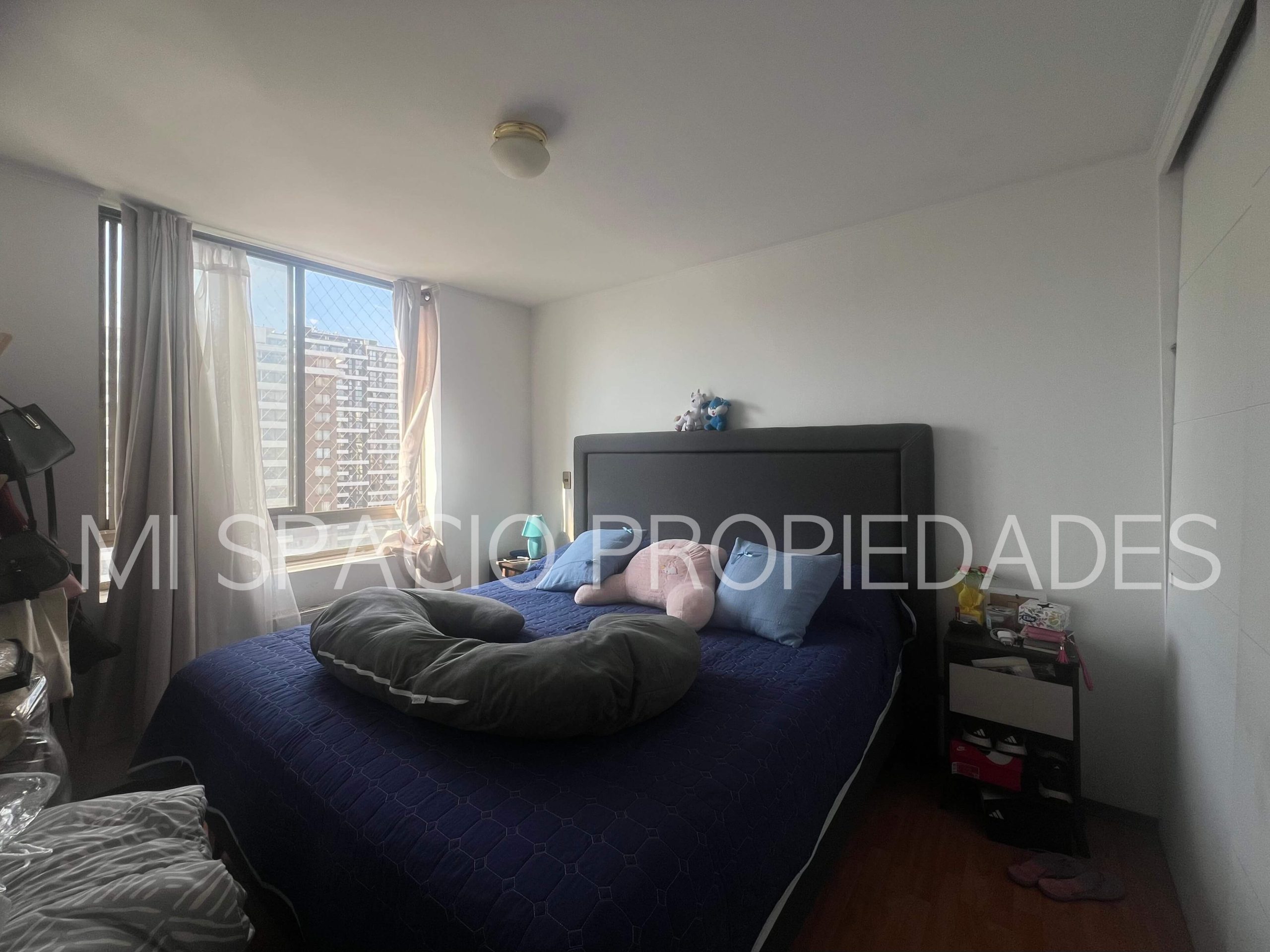 Cocina americana amoblada y equipada: encimera eléctrica, horno eléctrico empotrado y campana, conexión para lavadora de platos o de ropa. 1 dormitorio con closet para cama de 1 plaza, o escritorio, 2do dormitorio principal con closet, 1 baño completo con tina. Balcón en living, estacionamiento en superficie, sin bodega. Edificio Don Vicente cuenta con 2 torres, con 3 ascensores en cada una, 14 unidades por piso, 23 pisos totales, conserjería, acceso controlado 24 x 7, áreas comunes compuesta por piscina, áreas verdes, juegos infantiles, quinchos, sala de lavandería y secado, estacionamiento para visitas.