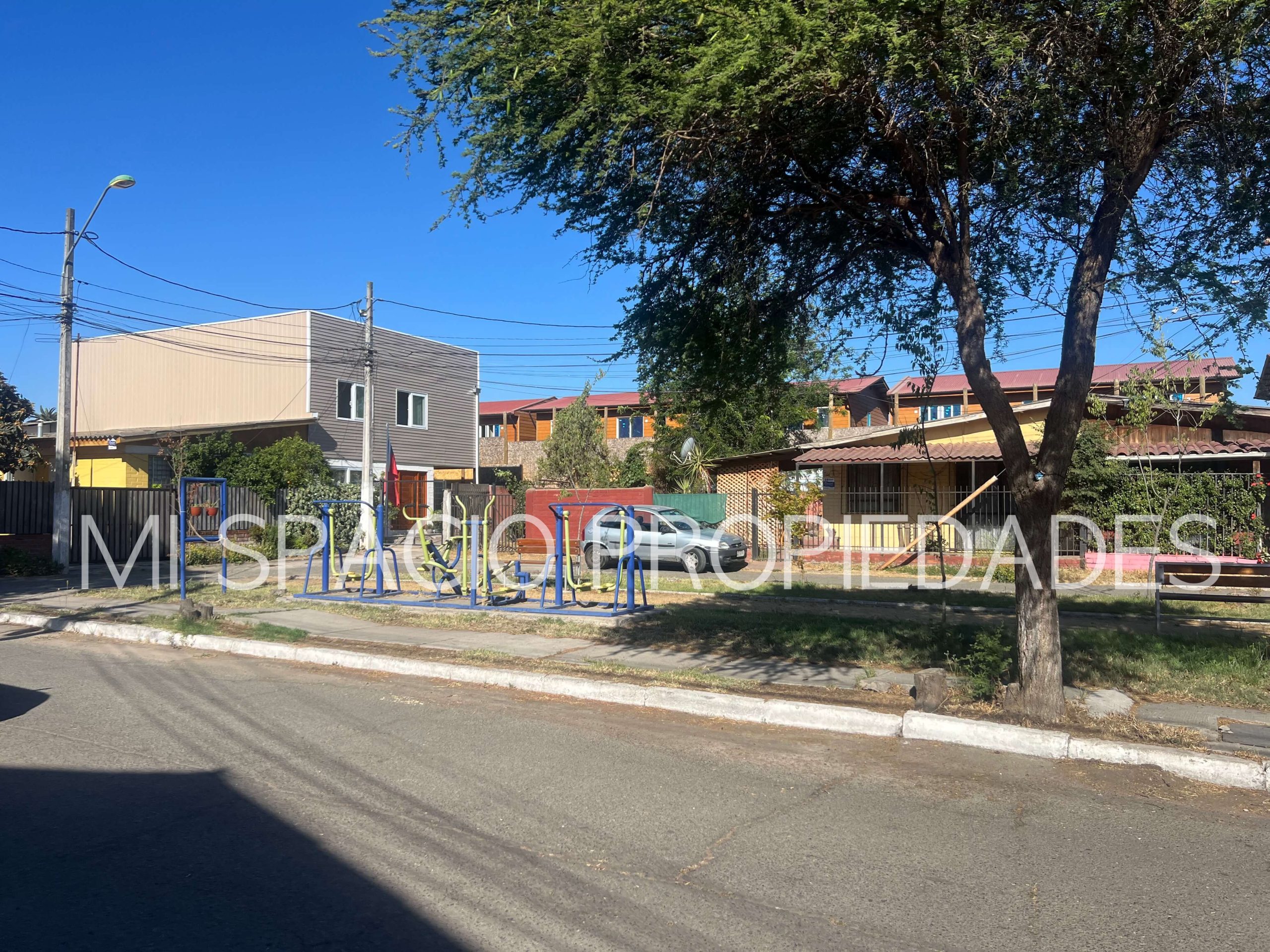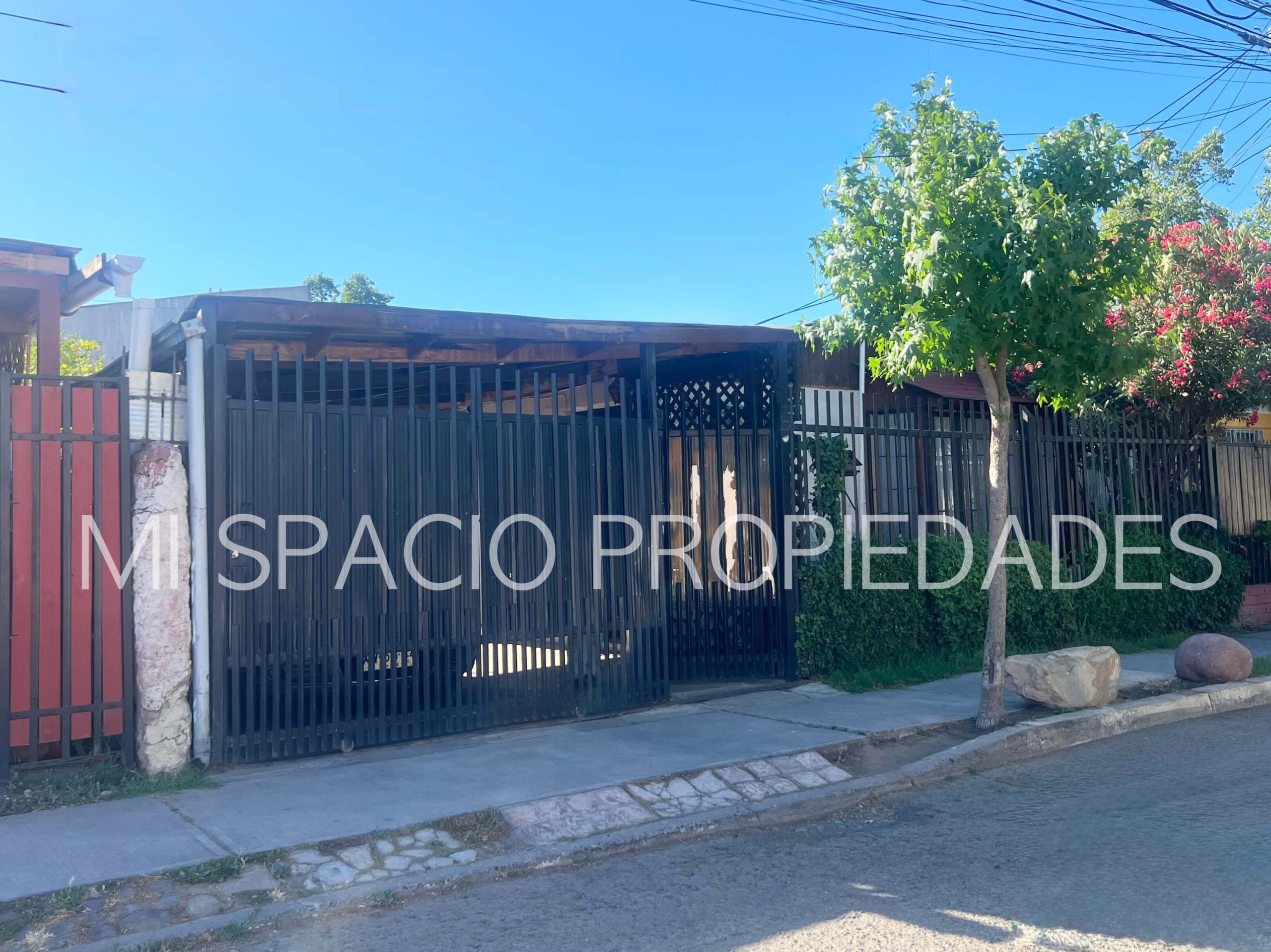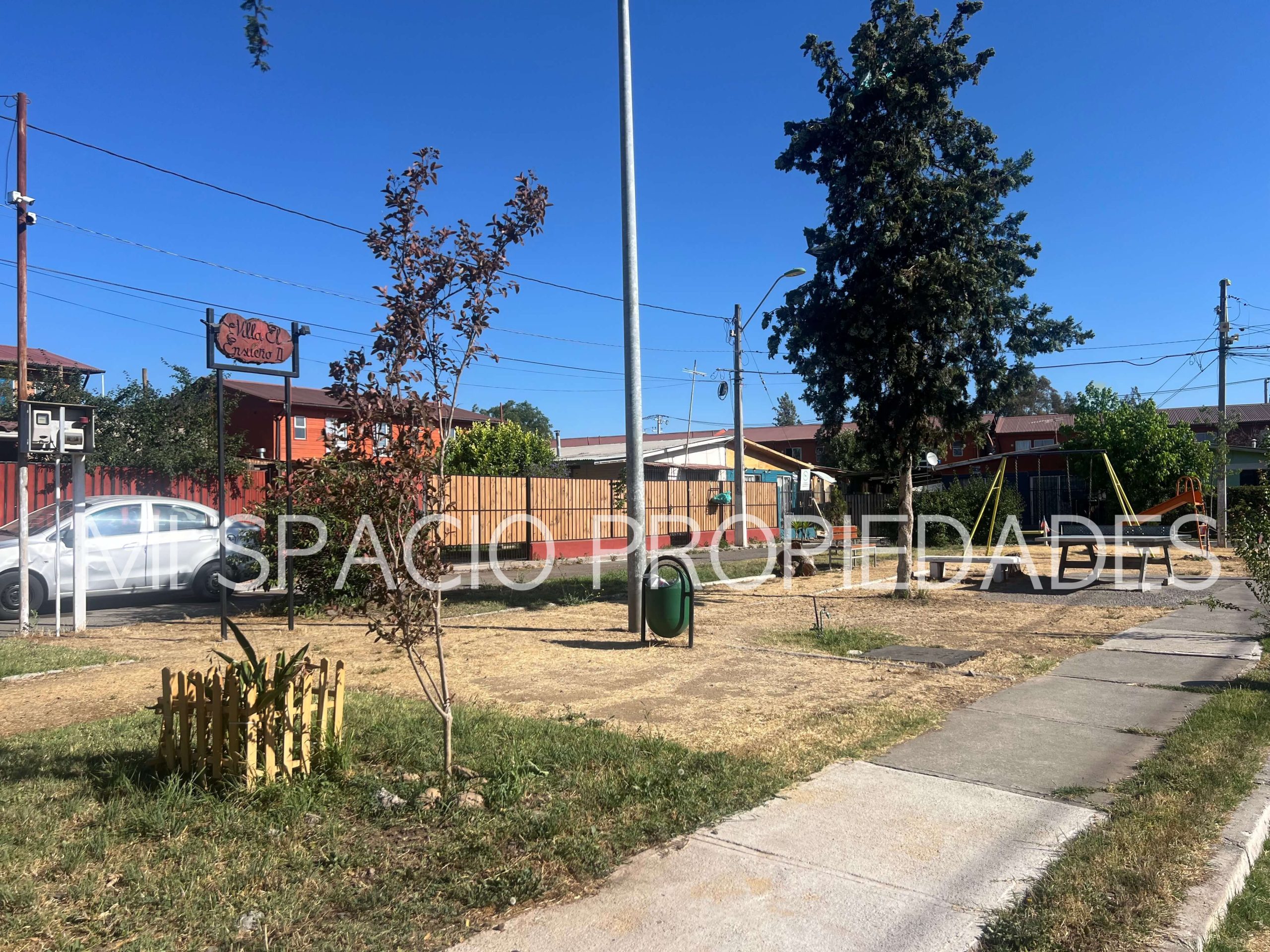 Portón en fierro de corredera, puerta peatonal, pavimentos exteriores, espacio techado para estacionar 2 autos. Ubicada en Villa cerrada con plaza de juegos, acceso controlado por portón automático y alarma comunitaria. Inmersa en la zona urbana a pasos de locomoción pública.